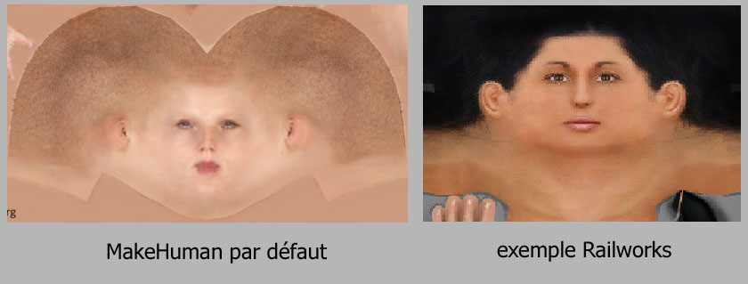 C'est le cas le plus simple. Le principe est de préparer la morphologie du personnage sous MH, puis de l'exporter dans un format importé par Blender. Dans Blender il est alors possible de modifier l'attitude, des détails et des textures puis de l'exporter directement en format IGS à l'aide des plugins réalisés par Dom107 (v1.47 pour Blender 2.7x) disponibles sur Railsim-fr.com.Pour réaliser mes personnages, j'ai utilisé : MakeHuman "instable" 1.1.0 -20151009 (r1963) et Blender 2.63 complétés par le plugin MHX2 autant pour l'export depuis MH et l'import dans Blender. En effet la version "stable" MH 1.0.2 ne comporte pas les attitudes (poses) prédéfinies, ni les expressions du visage. Il y a par ailleurs des incompatibilités entre les versions MH 1.0x et MH 1.1, en particulier dans le format d'échange "mhx" qui n'est plus supporté par MH 1.1.