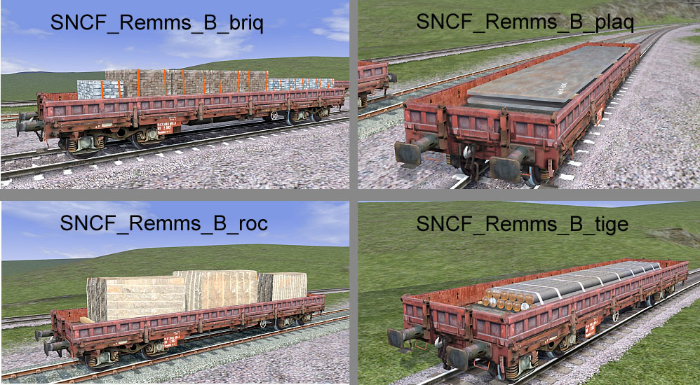 - Pack 2 - SNCF_Remms_B : ranchers abaissés, 4 types de chargements.